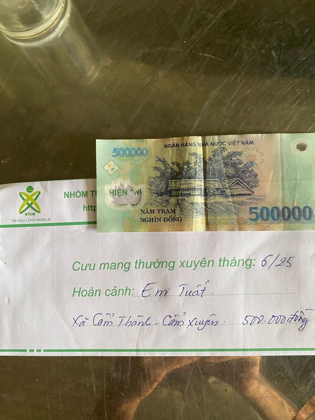 Chào cả nhà !Chúng ta còn sót khoản tiền CMKTX của bác @kimbang từ năm 2022 tới giờ chưa trao... trong khi hàng tháng vẫn có thành viên ghé thăm và trao tiền CMTX. Rất xin lỗi vì việc bỏ sót này.@trangvitgioi : Em xuất chuyển 1,000,000₫ của bác @kimbang tới mẹ con chị Tuất dùm nhé.Xin cảm ơn sự quan tâm của cả nhà Thân mến.