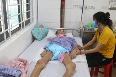 Sau 1 đợt điều trị ở Bệnh viện đa khoa tỉnh Hà Tĩnh thì chuyển về Khoa Y học cổ truyền - Bệnh viện Phục hồi chức năng. Hiện tại, sức khỏe bệnh nhân đang rất yếu,