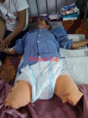 Bố anh năm nay đã hơn 70 tuổi, cách đây 3 tháng 2 chân bị hoải tử nên phải cắt bỏ