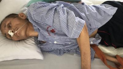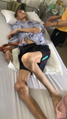 Hiện tại, sức khỏe bệnh nhân đang rất yếu, liệt tứ chi, ăn uống qua sonde, đại tiểu tiện ko tự chủ.