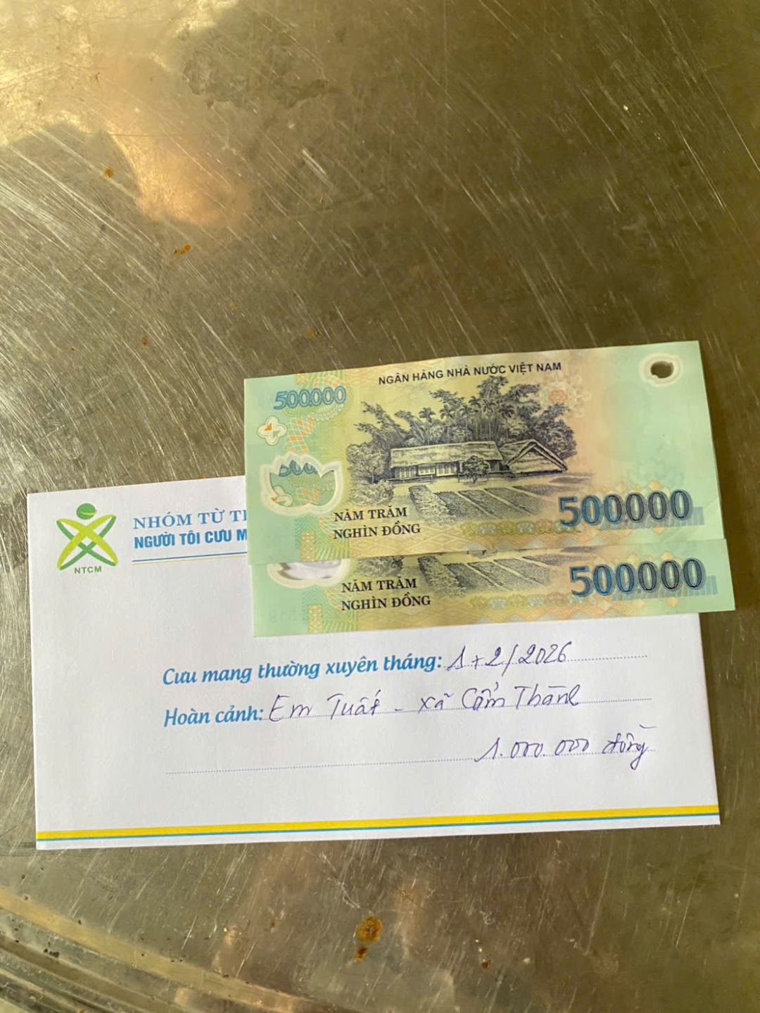 Chào cả nhà !Chúng ta còn sót khoản tiền CMKTX của bác @kimbang từ năm 2022 tới giờ chưa trao... trong khi hàng tháng vẫn có thành viên ghé thăm và trao tiền CMTX. Rất xin lỗi vì việc bỏ sót này.@trangvitgioi : Em xuất chuyển 1,000,000₫ của bác @kimbang tới mẹ con chị Tuất dùm nhé.Xin cảm ơn sự quan tâm của cả nhà Thân mến.