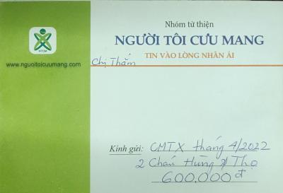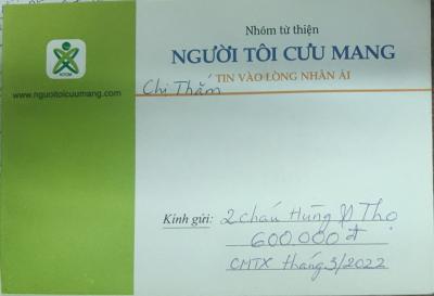 Hôm qua 6x ghé trao CMTX tháng 5/2022 tới 2 cháu Hùng và Thọ với các khoản như sau :