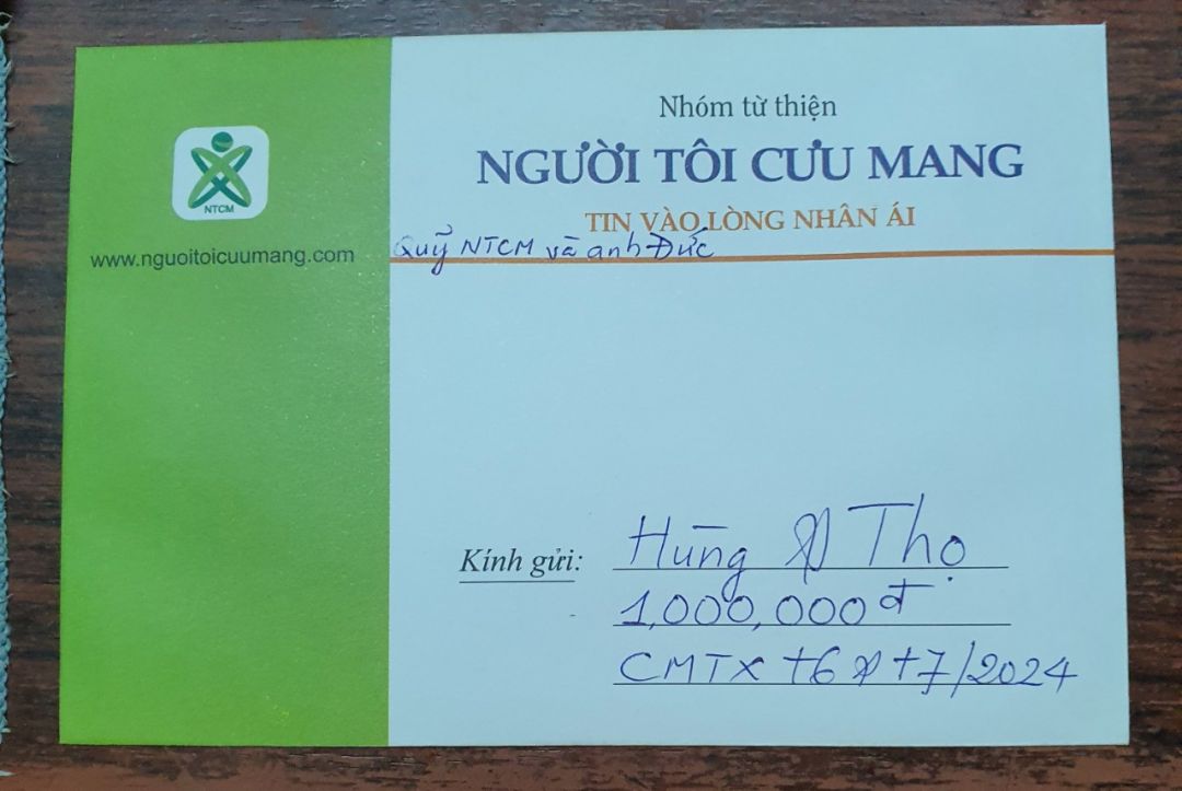 Anh Đức CMTX 300.000đ/tháng hoàn cảnh này từ tháng 7/2024 chuyển qua anh Banbe6x, còn thiếu 200.000đ đề xuất trích Quỹ NTCM hỗ trợ.