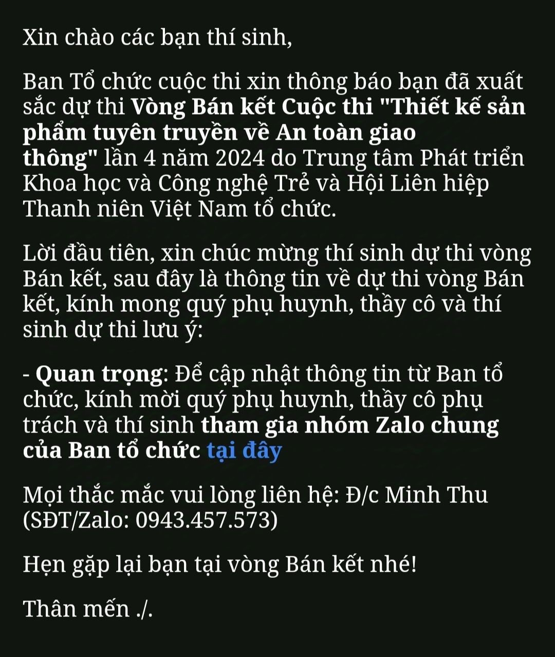 Dạ con xin chào cả nhà ạ. Con tên là Nguyễn Hữu Thọ, con đã nhận được CMTX tháng 9/2024 con xin cảm ơn chú Đức ,GD HATCAT và quán cơm 2.000 đồng đã hỗ trợ cho con và em con ạ. Và con cũng muốn chia sẻ một vài trải nghiệm của con và Hùng trong tháng 9 vừa qua ạ. Dạ vừa qua ở các tỉnh phía Bắc phải hứng chịu lũ quét và sạt lở đất khi con xem những bài báo trên mạng con thật sự mong mình có thể góp một phần nhỏ sức của mình đến các đồng bào, con và em có nuôi heo và tụi con có để được số tiền gần 600k ạ con và em trích 200k để hỗ trợ cho những đồng bào đang khó khăn ngoài kia, ngoài ra nhà con cũng có gom những đồ cũ nhưng vẫn còn mặc được đem giặt và hỏi những người quen có đồ cũ không mặc có thể ủng hộ những người khó khăn được không và con chở tất cả đồ đó để đi đưa cho một cô sẽ đi lên những vùng phía Bắc để giúp đỡ cho người dân những điều đó con chỉ hi vọng có thể giúp một ít để cho mọi người ngoài đó có thể mạnh mẽ mà vượt qua được khó khăn. Và cũng gần đây con có tham gia an toàn giao thông và cũng có vào vòng tuyển chọn bán kết nhưng mà con bị loại dù có chút buồn nhưng con cũng không thất vọng vì con được học hỏi nhiều kinh nghiệm nhue việc mạnh dạn thuyết trình hay cách triển khai ý tưởng của những anh chị đại học. Dạ con chia sẻ những điều như vậy nó sẽ như một cuốn nhật kí của con và cũng như là chặng đường trưởng thành của con để khi quay lại con thấy mình làm được cũng nhiều điều ạ. Con cảm ơn mọi người đã lắng nghe con ạ.