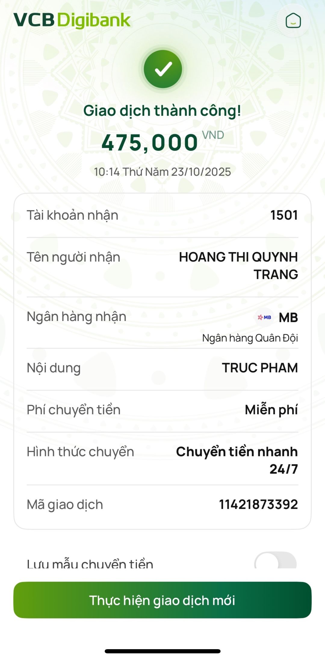 @ Anh Banbe6x: Bạn Trúc chuyển nhầm số tiền CMTX 475.000đ vào quỹ, anh 6x điều phối chuyển 475k này vào tk em Thọ giùm em luôn nhé. Thanks anh.