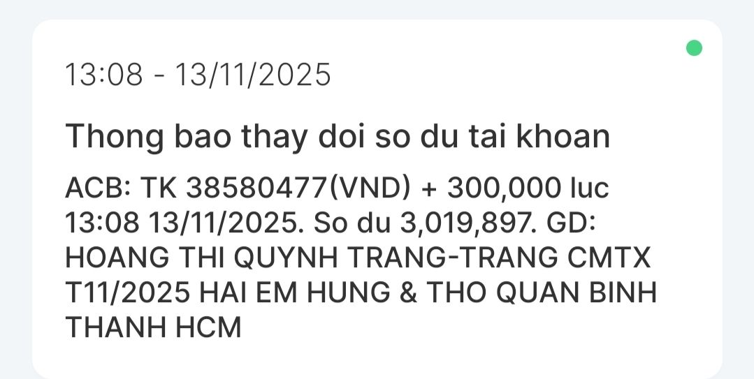 Con tên là Nguyễn Hữu Thọ, con đã nhận được CMTX tháng 1/2025, con xin cảm ơn chú Đức ,GD HATCAT, cô Trang, nhóm cô Thảo và quán cơm 2.000 đồng đã hỗ trợ cho con và em con ạ.