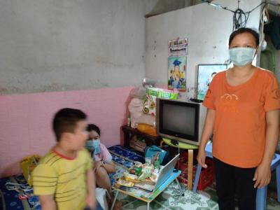 Trước dịch, chị Tuyết làm bảo mẫu ở một trường mầm non tư thục gần nhà, lương mỗi tháng được 5 triệu. Anh làm nghề lái xe xúc, lãnh tiền theo công trình, trung bình mỗi tháng cũng được 3 đến 5 triệu. Anh chị có hai đứa con, bé lớn sinh năm 2010, năm nay bé chuyển cấp lên lớp 6. Bé nhỏ sinh năm 2017, bình thường đi theo mẹ đến trường mần non. Hàng tháng tiền trọ luôn tiền điện nước là 1,2 triệu.