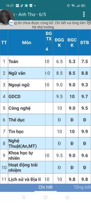 Con gửi điểm cho cô chú cùng xem ạ.