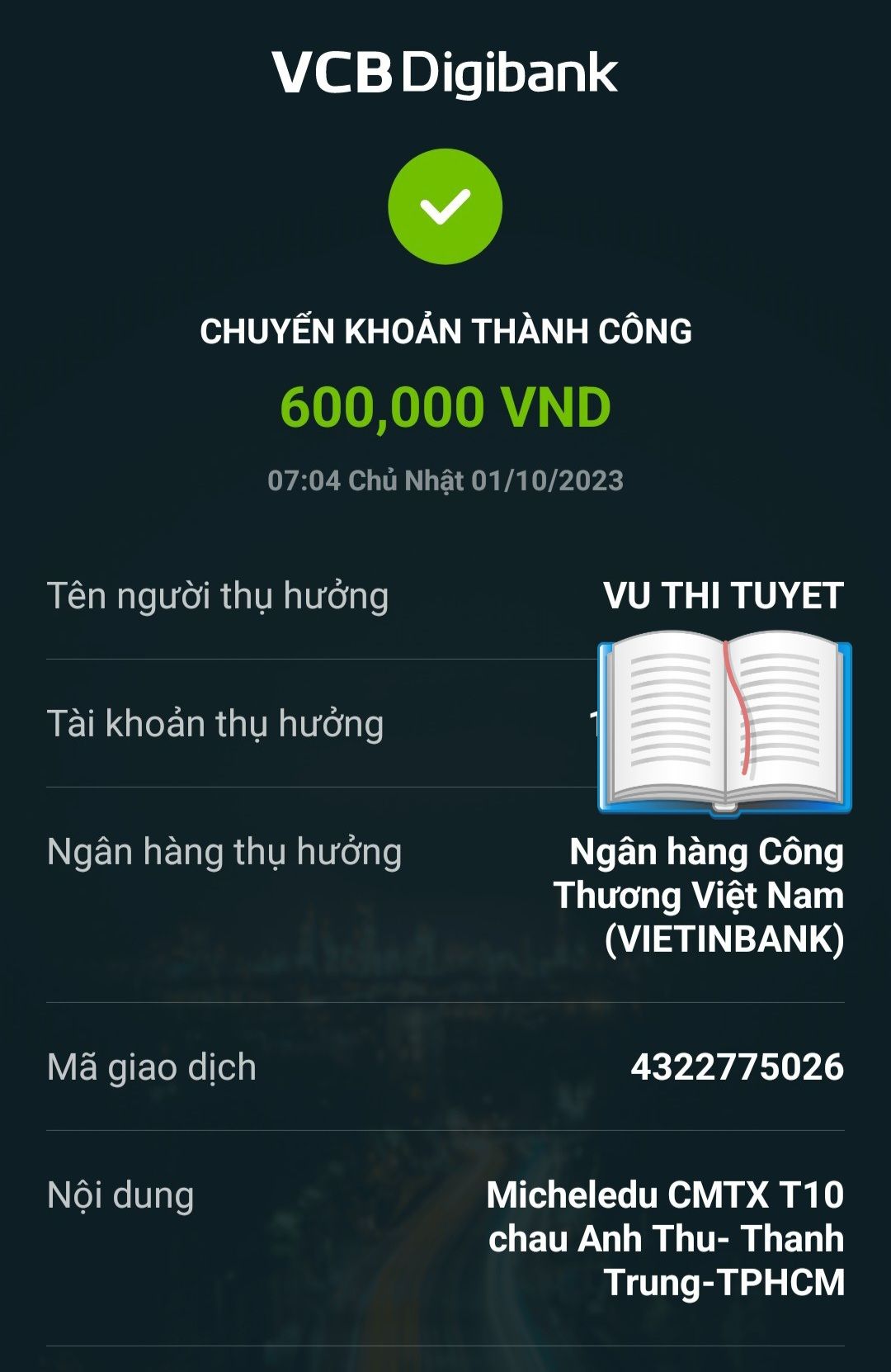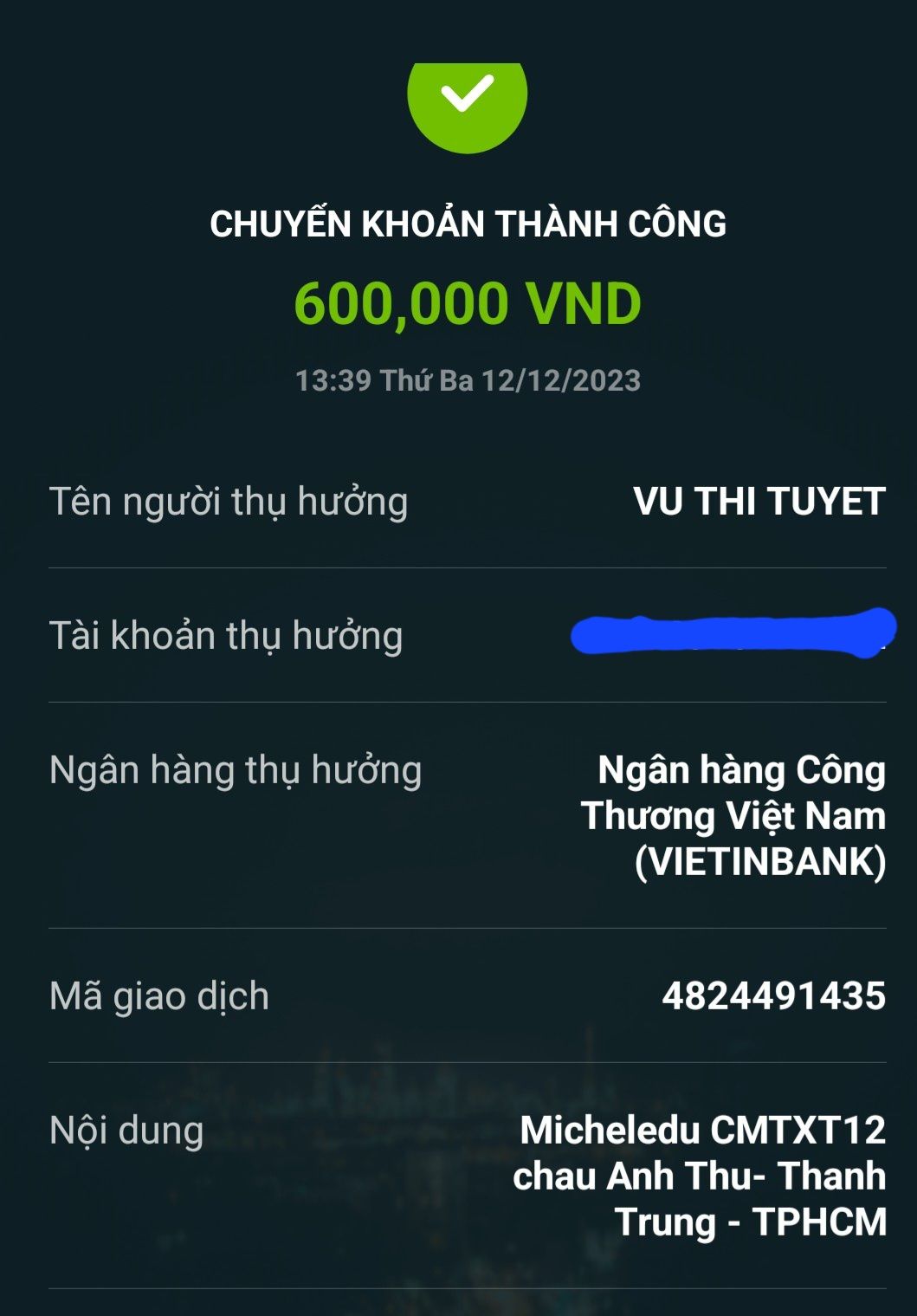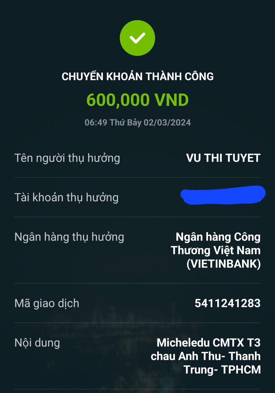 Lathuvang đã chuyển CMTX T3/24 của chị Michele_du và GĐ đến cháu Anh Thư- Thành Trung.