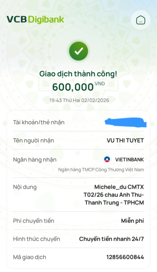 CMTX T01/2026 của cô Michele_du và GĐ đã đươc chuyển đến cháu Anh Thư -Thành Trung.