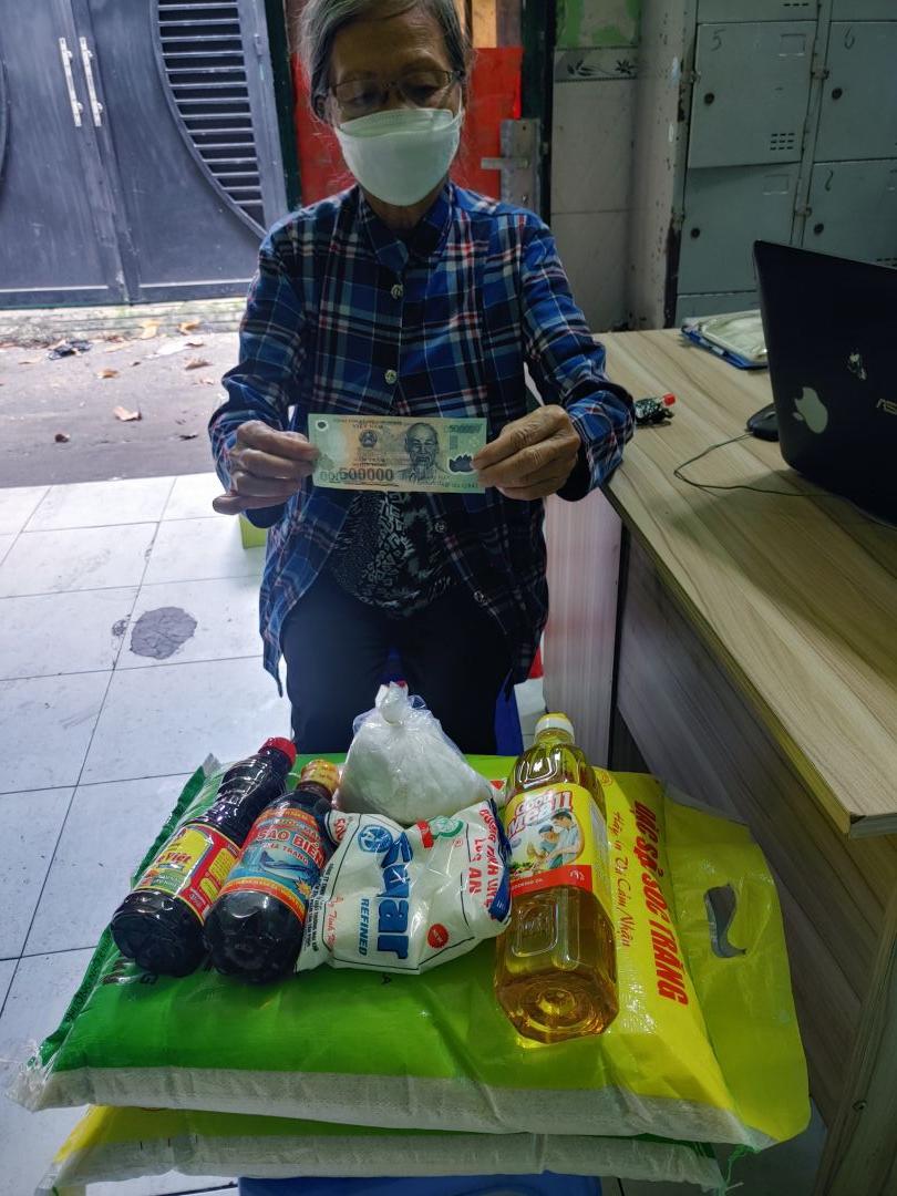 Letuantu cập nhật hình ảnh trao 500,000đ tiền CMTX T6 từ Michele_du &GĐ gửi cho cô Điệp - bà của bé Anh Thư kèm theo gạo & nhu yếu phẩm CMTX hàng tháng.