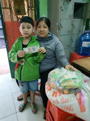 Letuantu cập nhật hình ảnh trao nhu yếu phẩm CMTX T6 kèm 500,000đ từ Michele_du và gia đình gửi cho cháu Tuấn Tú.