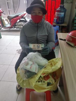 Hôm nay, chị Dung đã đến quán cơm để nhận gạo, nhu yếu phẩm và 500,000đ CMTX T12 từ Michele_du và gia đình hỗ trợ.