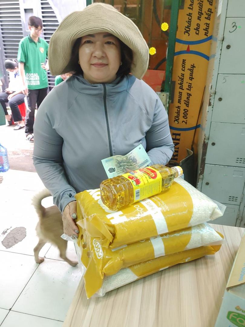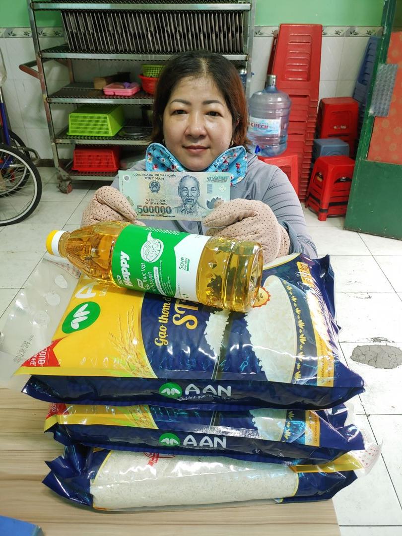 Tháng 10, dì Dung của bé nhận 15kg gạo cho 2 tháng 10 +11 kèm 1lit dầu ăn.