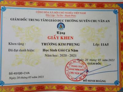 Phụng năm nay học lớp 12 ở trung tâm giáo dục thường xuyên Chu Văn An. Thành tích học tập các năm trước của em khá tốt, em có ước mơ muốn thi vào sư phạm hoặc y dược. Học kỳ này em được miễn đóng học phí theo diện hỗ trợ học phí của nhà nước.