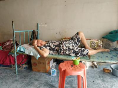 Bà em năm nay đã 76 tuổi, cách đây 1.5 năm, bà bị trượt chân ngã nên phải nằm 1 chỗ đến giờ.