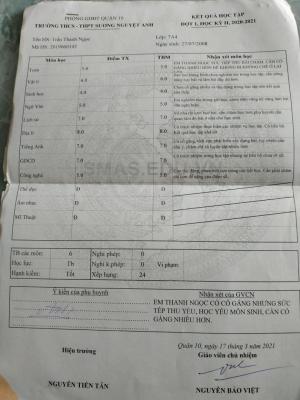 Em Ngọc hiện đang học lớp 8, trường THCS Sương Nguyệt Anh, do đang ở tuổi mới lớn, tâm sinh lý thay đổi rất nhiều, làm ảnh hưởng không nhỏ đến việc học nên thành tích học tập của em không được tốt lắm. Học kỳ này, em được miễn đóng học phí theo diện hỗ trợ của nhà nước.