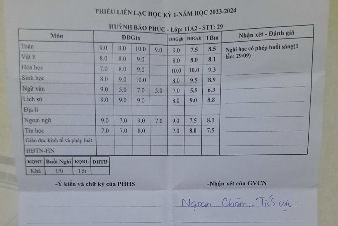 Đây là kết quả HK1 của 2Ae tụi cọn ạ Huỳnh Bảo Phúc và Huỳnh Bảo Lộc ạ