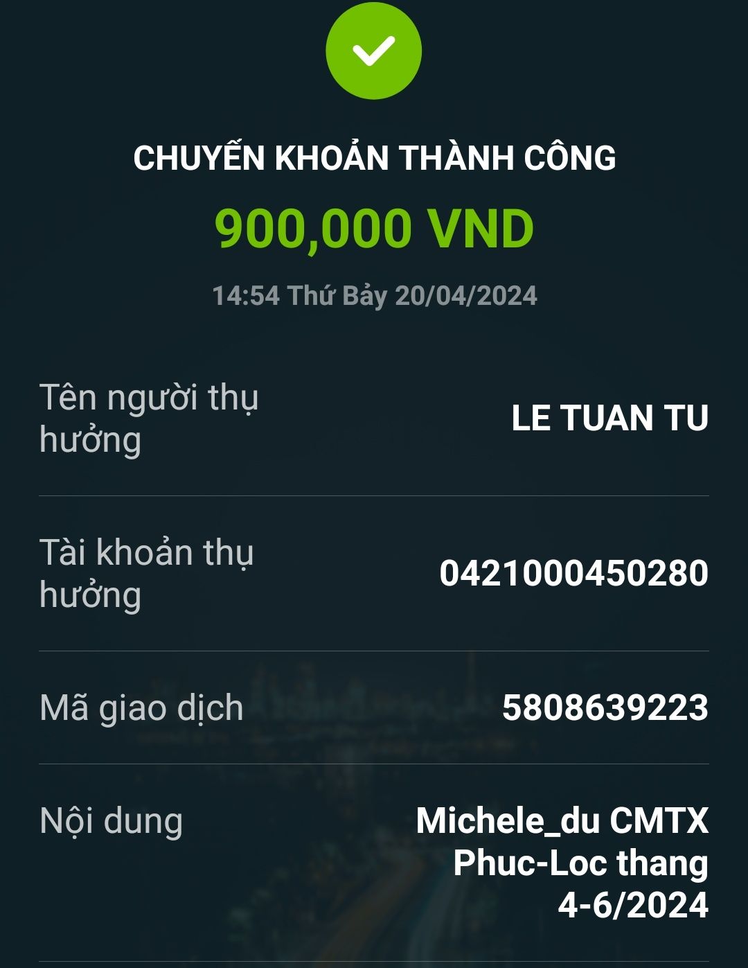 Con đã nhận được tiền tháng 11 từ Anh Letuantu là 600.000