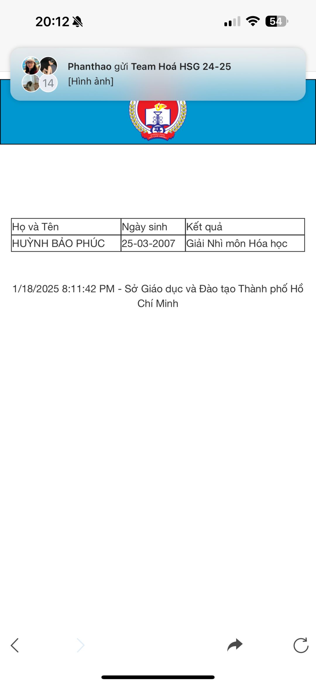 Chúc mừng em @Bảo Phúc đã đạt giải trong cuộc thi!