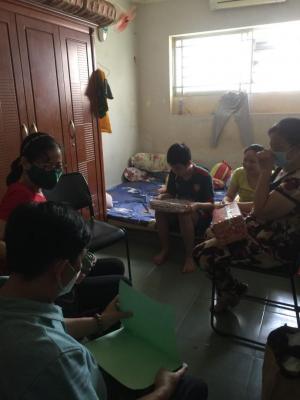 - Hiện tại với hoàn cảnh 3 bé, mỗi tháng gia đình nhận được hỗ trợ từ bên phường một ít.