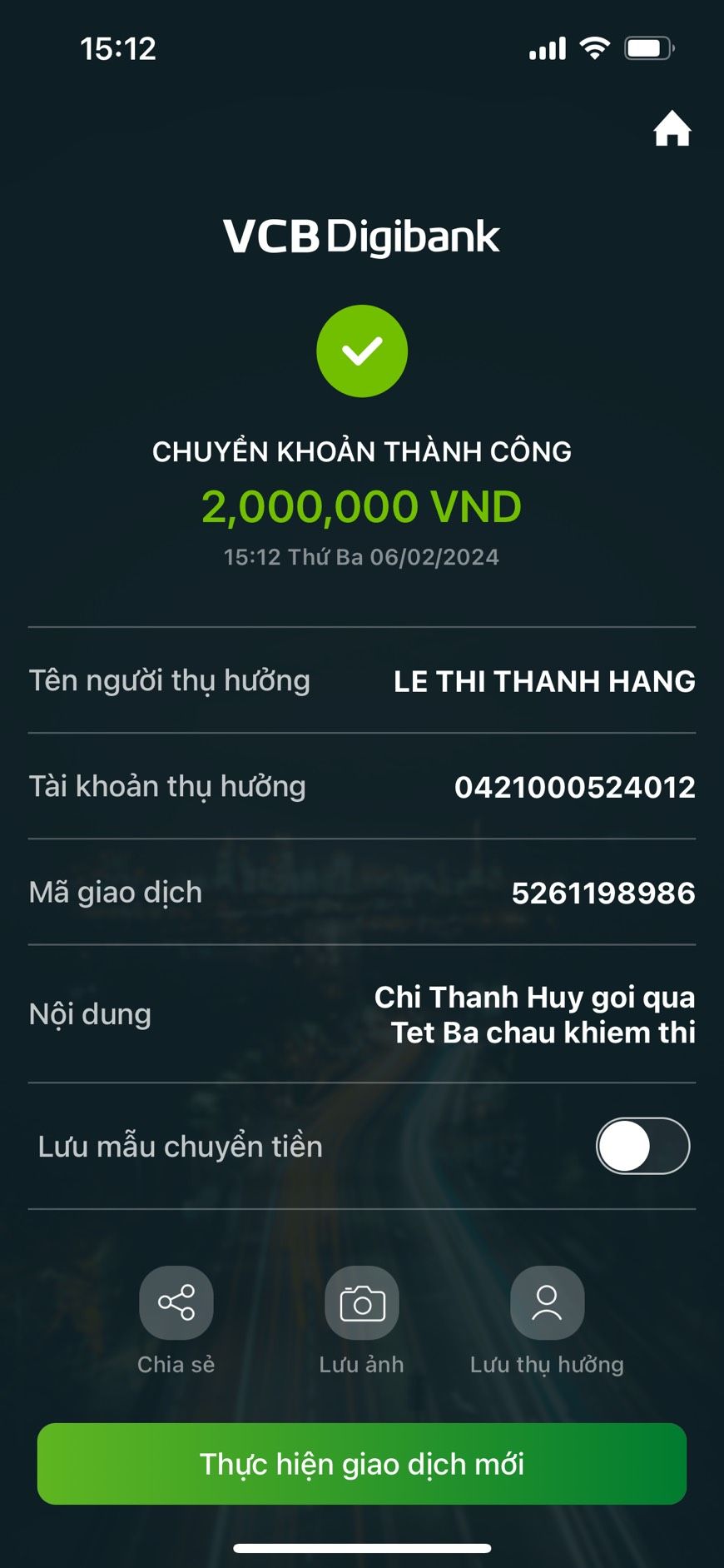 Tieuhuongduong gởi hình ảnh chuyển khoản CMTX tháng 12 của nhóm bạn chị Ly. Hết tháng này cũng là tròn hai năm nhóm bạn chị Ly CMTX các cháu, nay nhóm ngưng hỗ trợ và nhờ tìm người tiếp nối.