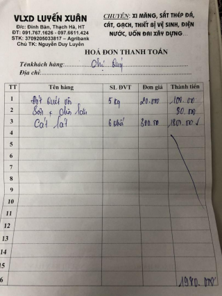 Vậy số tiền còn thiếu là: 4.572.000đ mong thủ quỷ chuyển về để nhóm Hà Tĩnh thanh toán nốt số tiền còn thiếu cho bên vật tư ah.