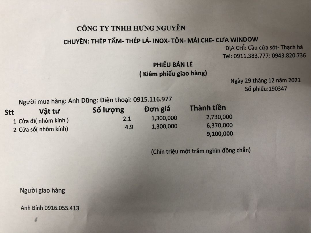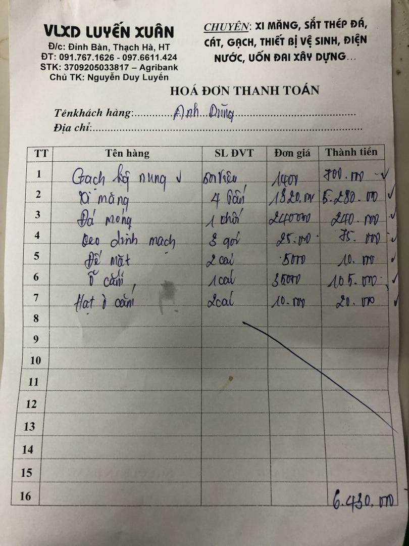 Vks xin cập nhật hoá đơn mua vật liệu NNMU số 38 của nhóm HT