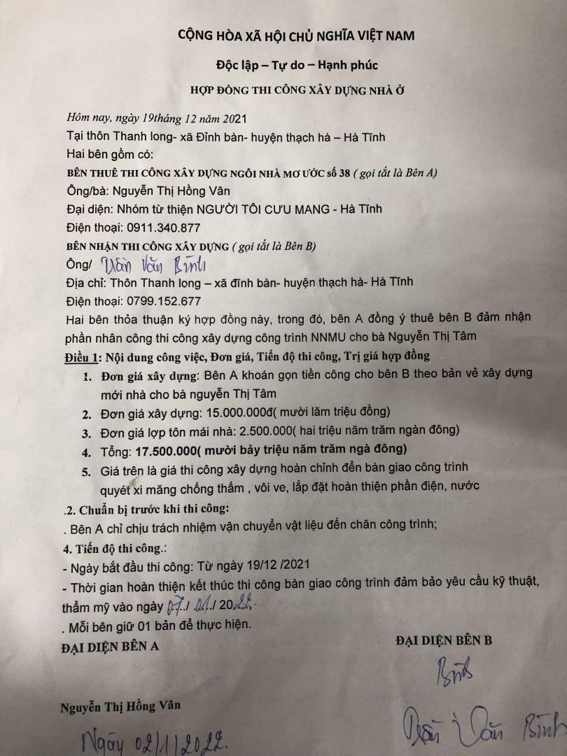 Sáng nay 10/01/2022 nhóm HT đã bàn giao NNMU số 38 cho gđ bà cháu cháu Vũ