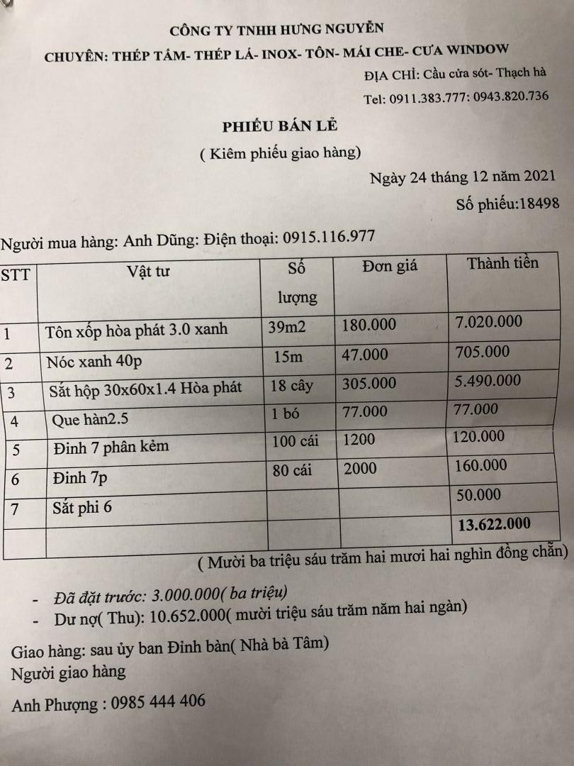 Vậy số tiền còn thiếu là: 4.572.000đ mong thủ quỷ chuyển về để nhóm Hà Tĩnh thanh toán nốt số tiền còn thiếu cho bên vật tư ah.