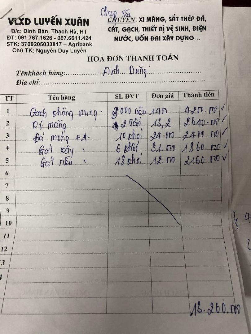 Vks xin cập nhật hoá đơn mua vật liệu NNMU số 38 của nhóm HT