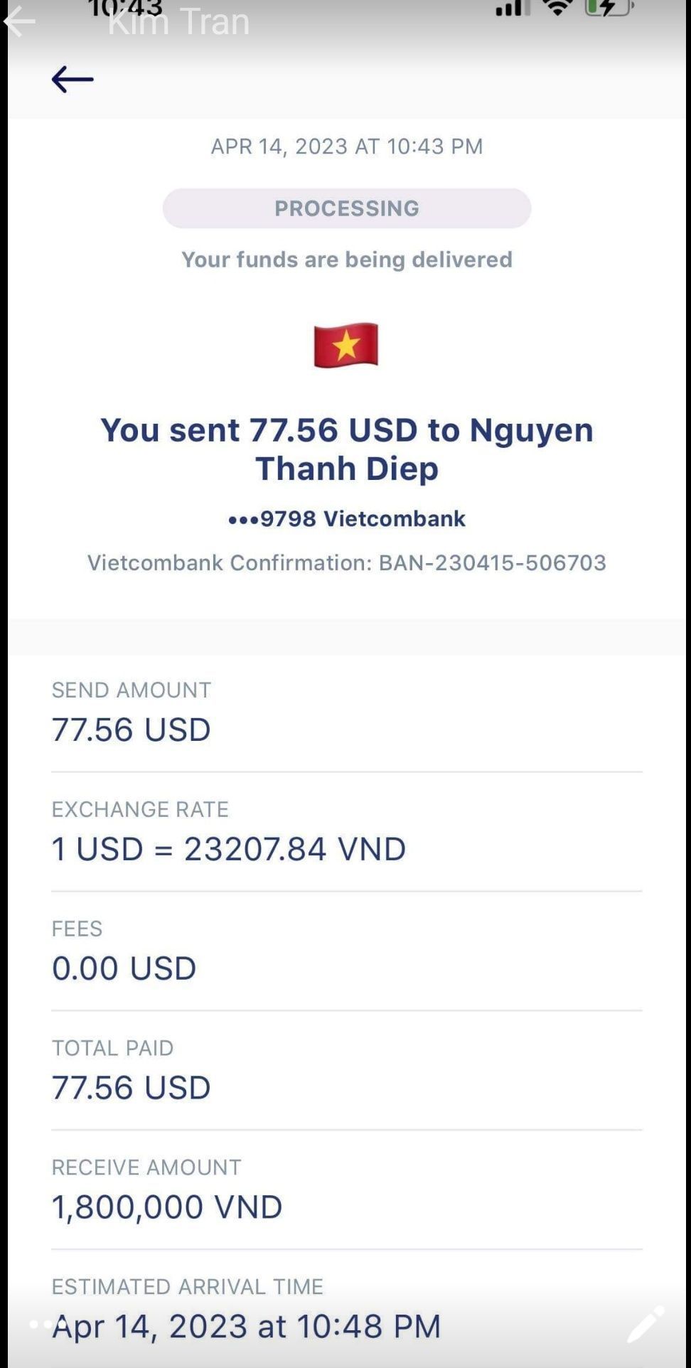 Em đã nhận được tiền 1,800,000 từ chị Lathuvang. Cảm ơn chị nhiều nhé!
