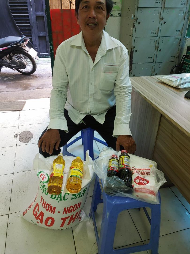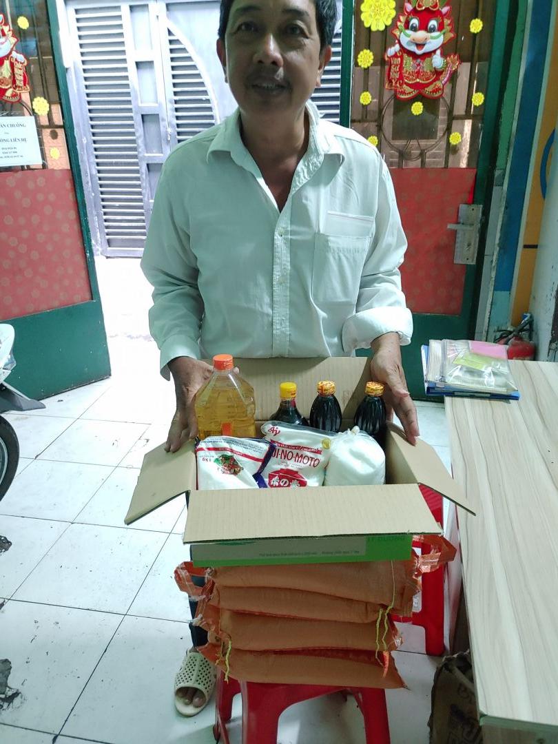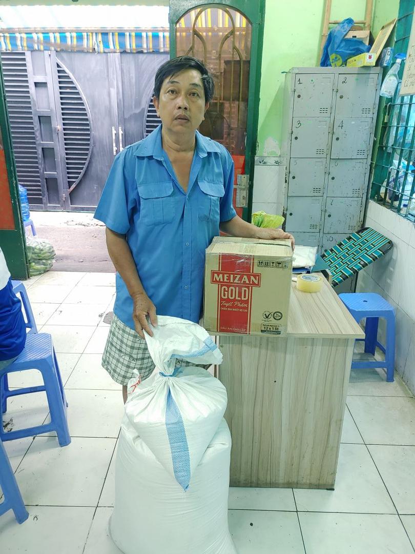 Chú Hùng đã ghé quán để nhận nhu yếu phẩm của 6 tháng rồi ạ.