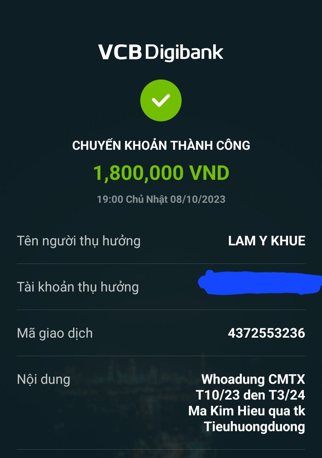 Tieuhuongduong đã chuyển 300,000đ CMTX tháng 3/2024.