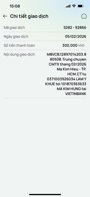 Tieuhuongduong đã nhận 2 triệu và đã hoàn thành chuyển CMTX của Whoadung đến các cháu từ tháng 7/2025 - tháng 01/2026 (7 tháng).