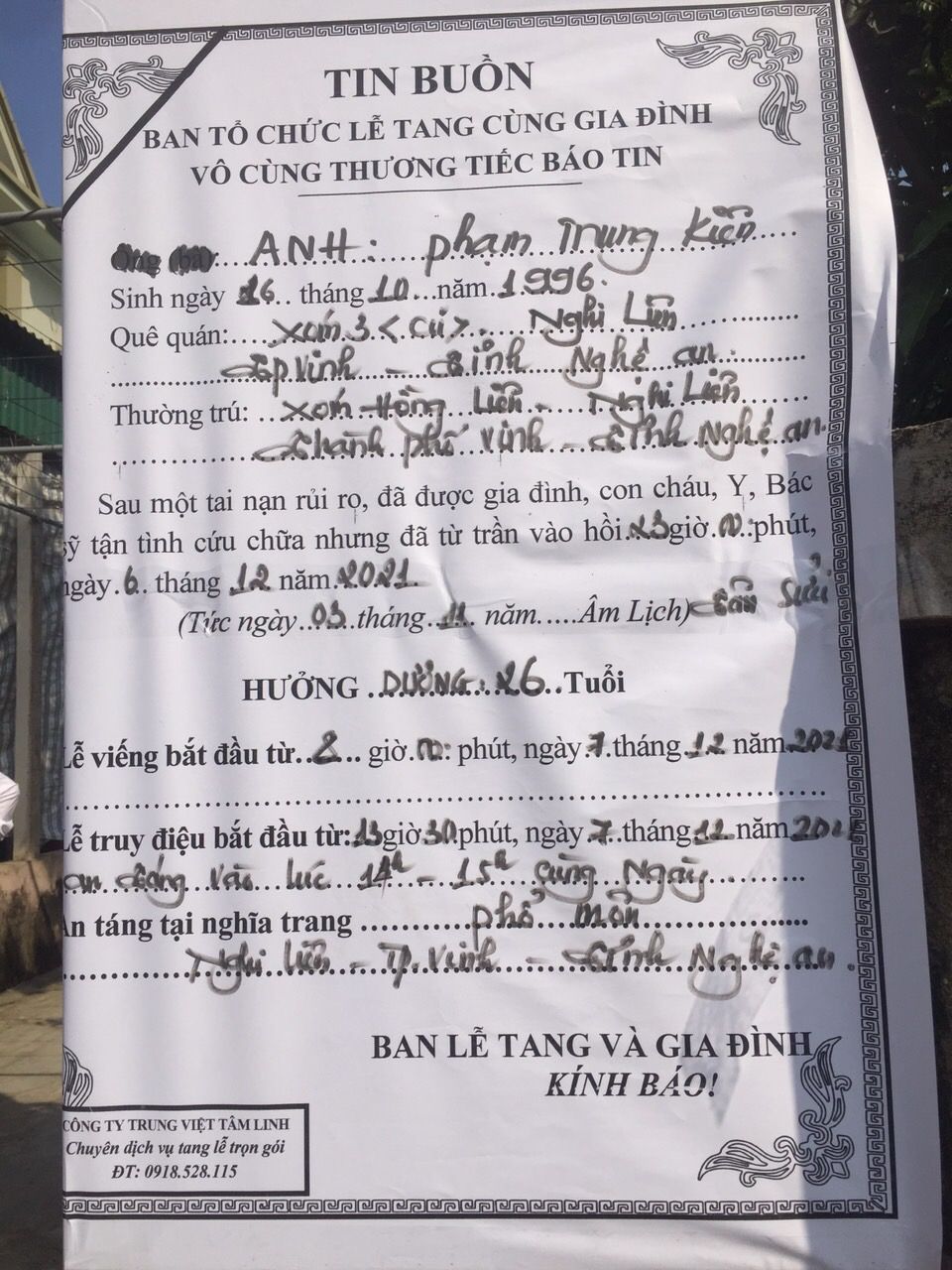 Đám tang của em được tổ chức tại nhà riêng xã Nghi Lộc - Nghệ an