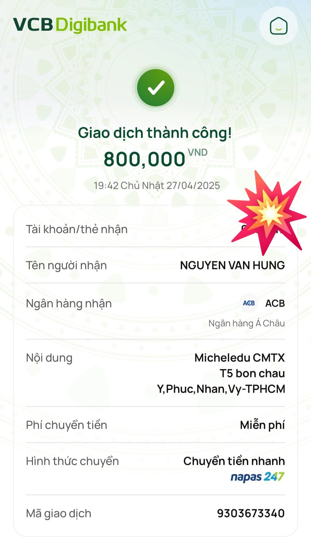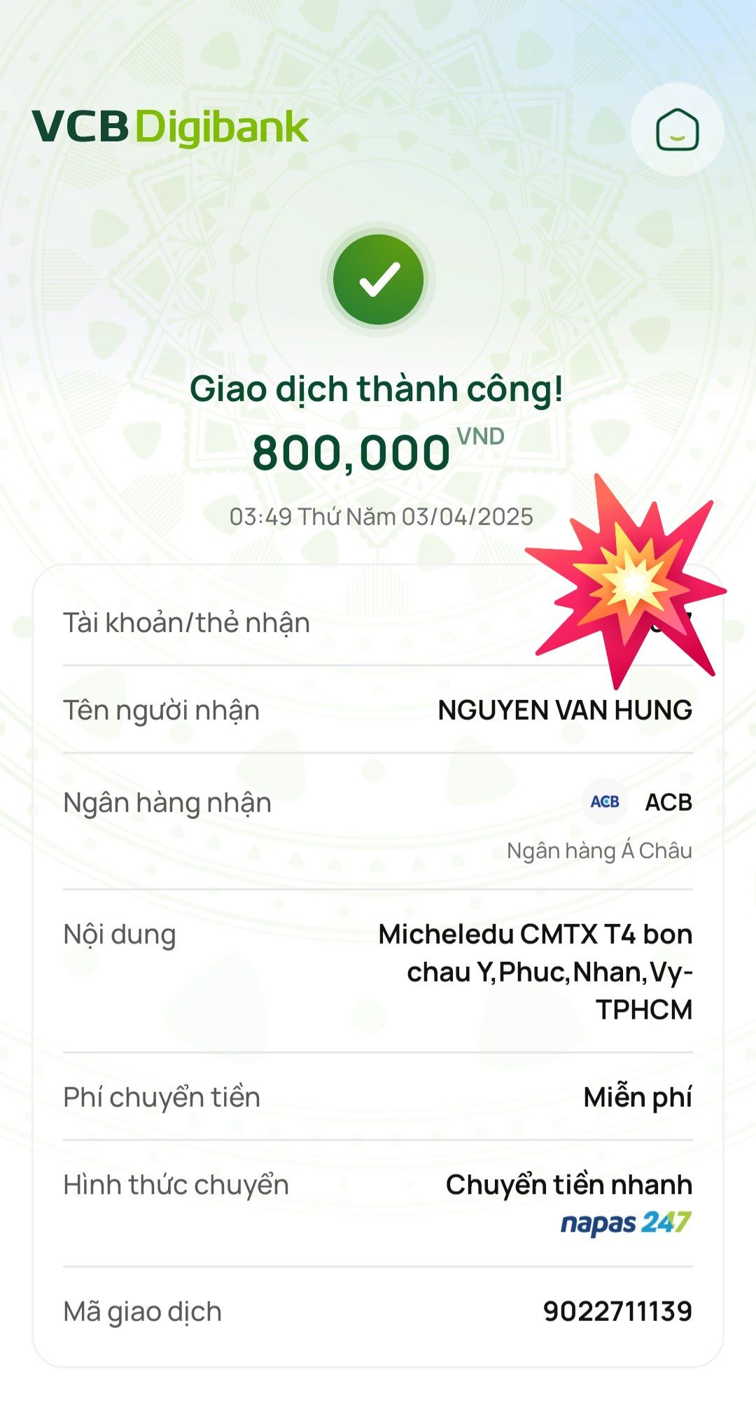 Ông ngoại của các cháu cũng nhận được lì xì của nhóm cô Thảo gửi các cháu.