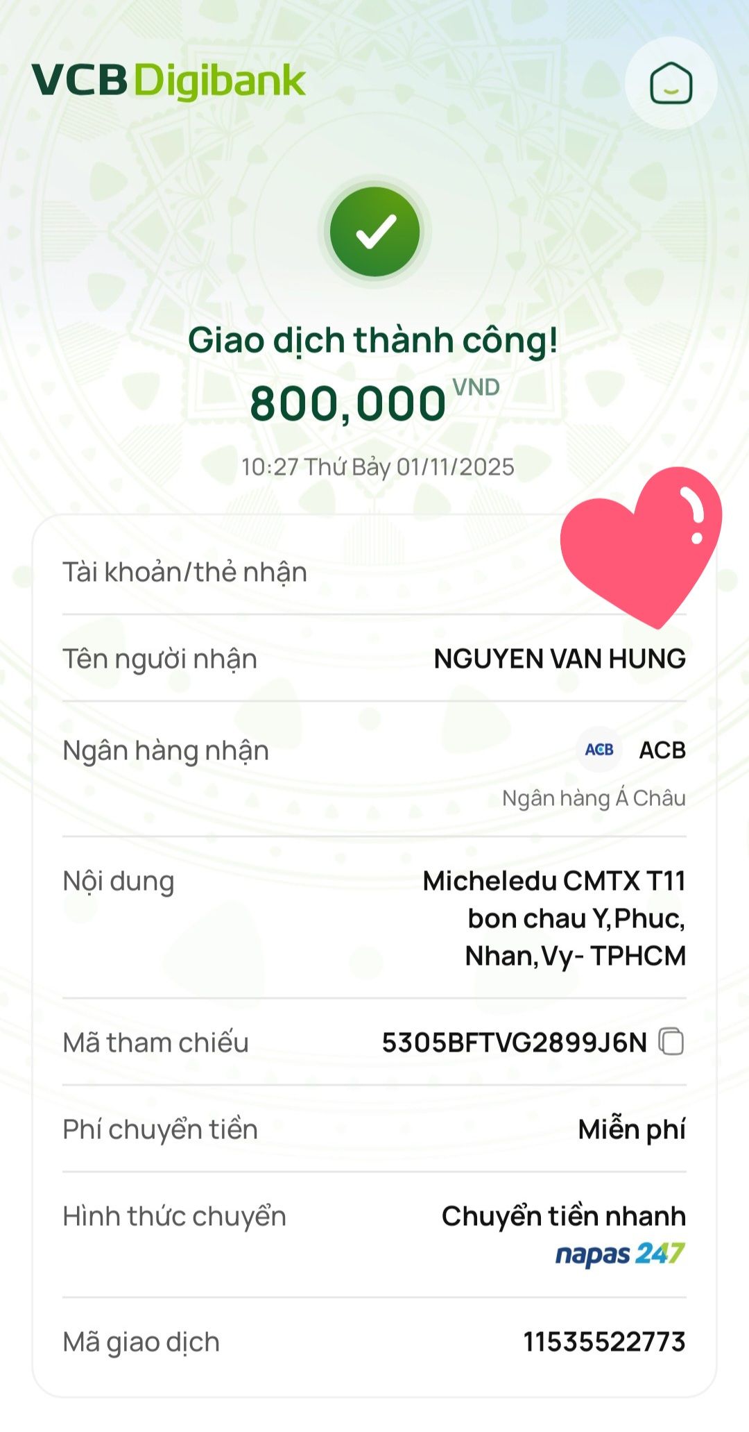 Ông ngoại của các cháu cũng nhận được lì xì của nhóm cô Thảo gửi các cháu.