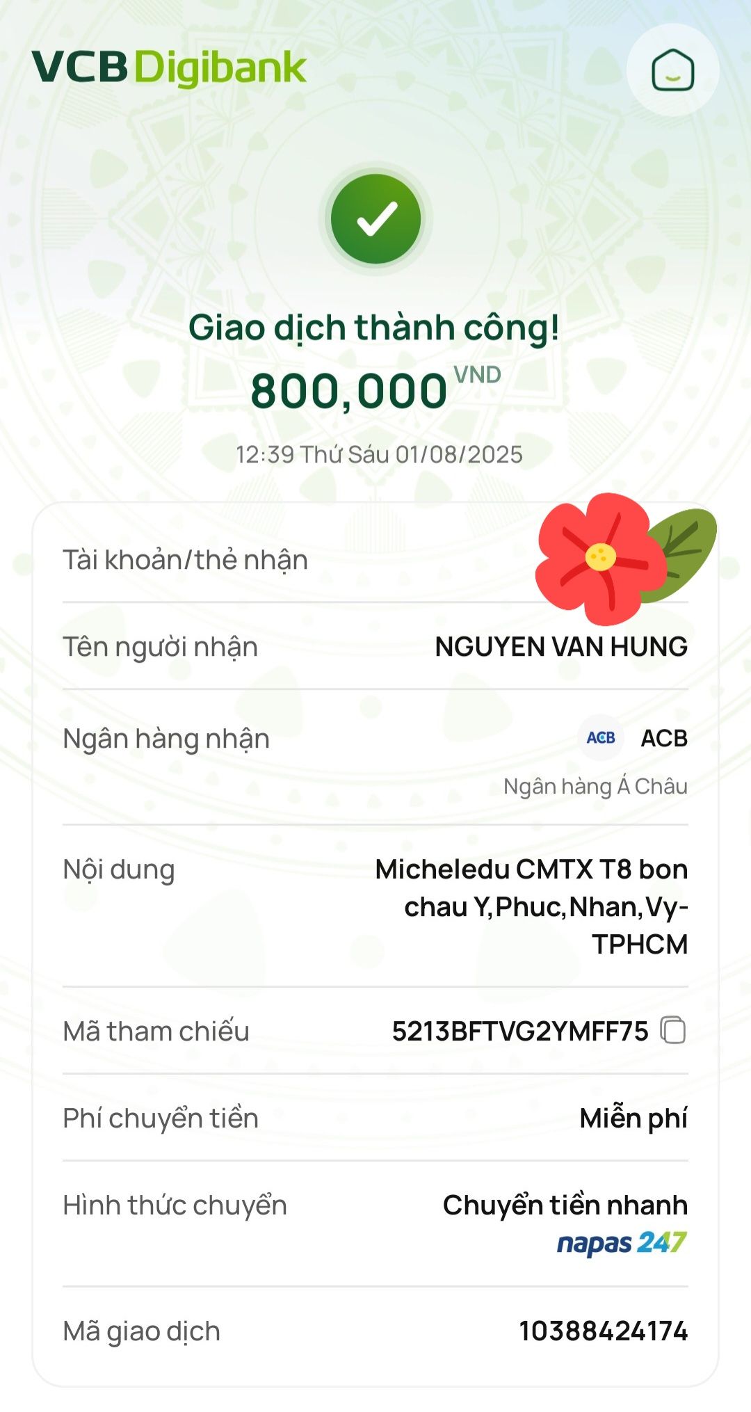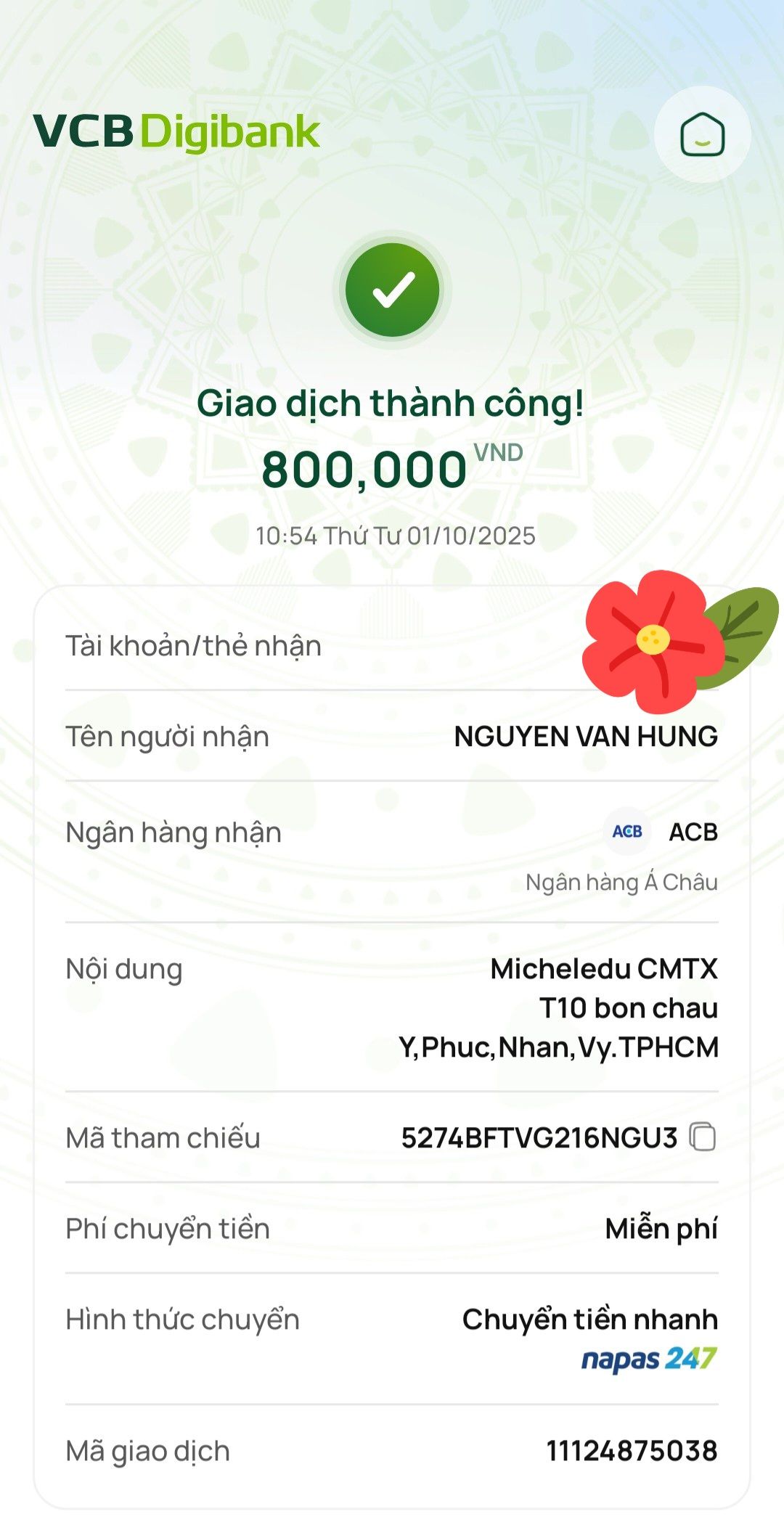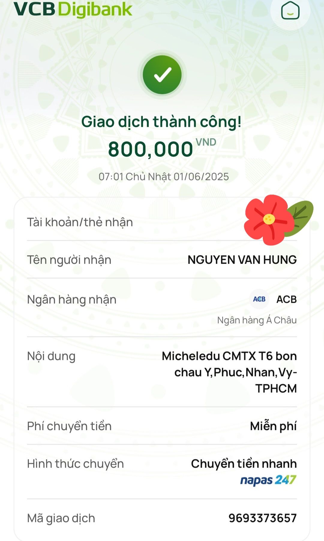 Michele_du và Gia đình vẫn tiếp tục CMTX các cháu với mức 800,000₫ từ tháng 2/2025 trong 1 năm các bạn nhé….