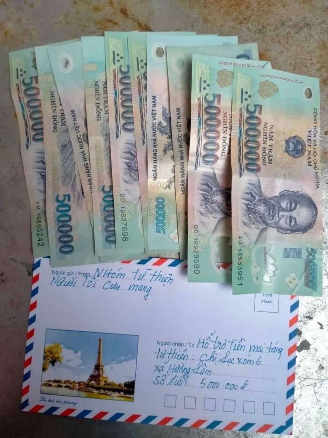 Em chuyển tới Vânkiêusa 5,000,000₫ mà các bạn đã chung tay giúp đỡ đám tang của chị Lục (có 200,000₫ là từ quỹ NTCM) dùm nhé.