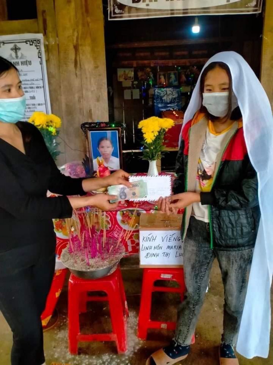 Do đặc thù đám tang ở Hà Tĩnh Phải đưa ra nghĩa trang trong ngày nên nhóm HT xim tạm ứng 5000.000( năm triệu đông) để kịp trao cho gia đình lo đám tang cho chị