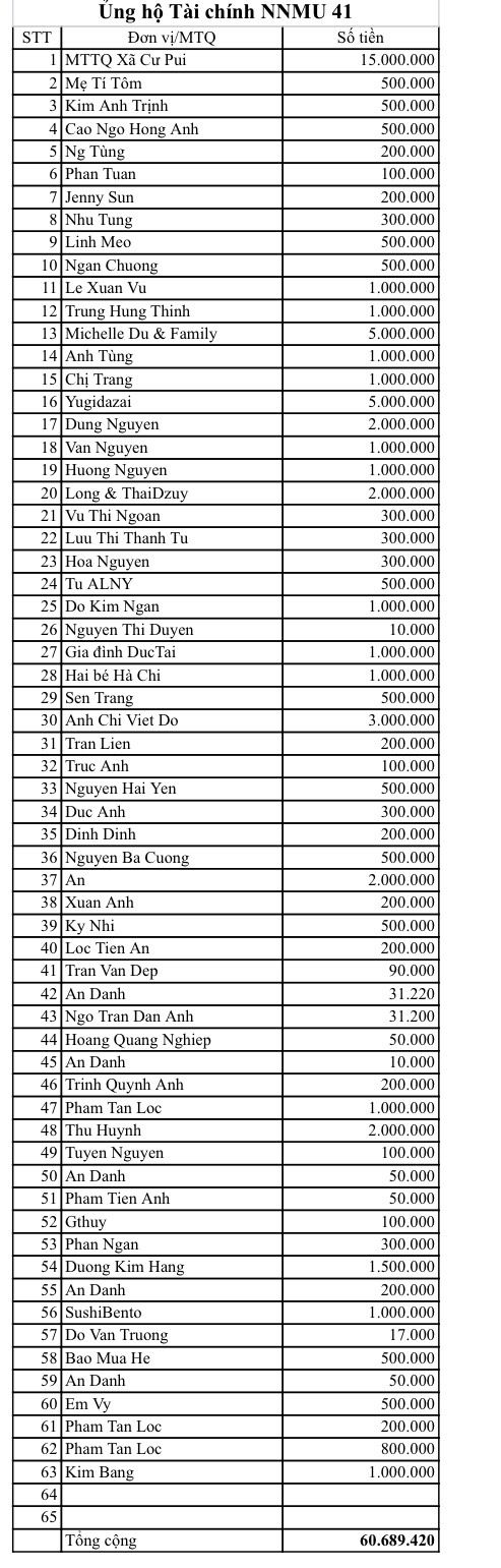 Trích dẫn của: Nguyễn Hữu Hiệp vào 11-08-2022 15:47:08Cập nhật tiến độ tạm ứng số tiền làm nhà NNMU 41 Ủng hộ gia đình anh Vư tại thôn Ea RơkSố tiền 40 triệu đồng, trong đó NTCM đã chuyển 20tr từ tháng 4/2022.Kính mong BQT điều phối tạm ứng thêm 20tr nữa ạ.Chân thành cảm ơn!@Trangvitgioi : Em tiếp tục chuyển tiền tạm ứng đợt 2 cho bạn Chinh Ha 20,000,000₫ để các bạn khu vực Cư Pui thực hiện chương trình dùm nhé.Xin cảm ơn sự chung tay của cả nhà và chúc mọi người luôn mạnh khỏe ạ.Thân mến.