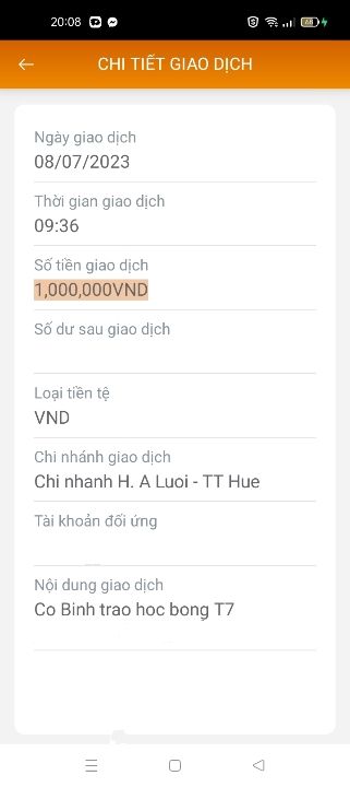 Con đã nhận được học bổng tháng 2 trị giá 500.000 đồng của chú Ben gửi rồi ạ!
