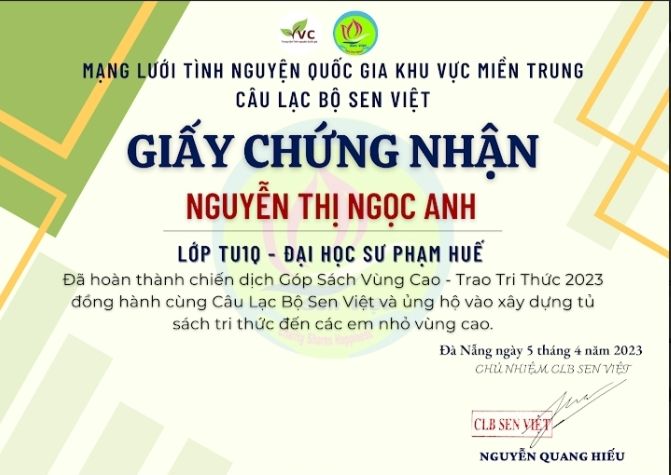 Sau khi theo dõi kết quả học tập của cháu Ngọc Anh thì một TV ( xin được giấu tên) thưởng cháu 1,600,000đ gửi nhờ qua tk quán cơm SG nhờ Lathuvang chuyển tiếp và LTV đã chuyển đến cháu Ngọc Anh.