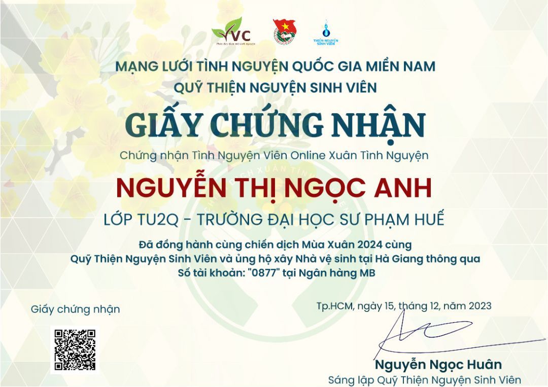 Hiện tại con đã nhận được phần quà trị giá 1 600 000 đồng của cô(chú) (TV giấu tên của NTCM) được cô lathuvang gửi đến con. Con xin cảm ơn cô(chú), cô lathuvang và quý MTQ mặc dù không phải lúc nào cũng nói ra nhưng các cô chú vẫn luôn theo dõi quá trình học tập của con. Món quà mà các cô chú gửi đến con không chỉ có giá trị vật chất mà còn là giá trị tinh thần, động lực để con cố gắng hơn mỗi ngày.