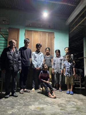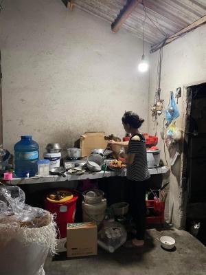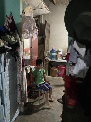 2 cháu con vợ chồng anh chị cũng đều khuyết tật, trong 2 cháu có 1 cháu đã 7 tuổi còn kèm bệnh viêm màng não, nên không kiểm soát được hành vi của bản thân, nên cả nhà bảo vệ cháu bằng cách nhốt lại trong 1 không gian riêng gần góc bếp, vì không kiểm soát được hành vi nên cháu phải mang bĩm suốt ngày.