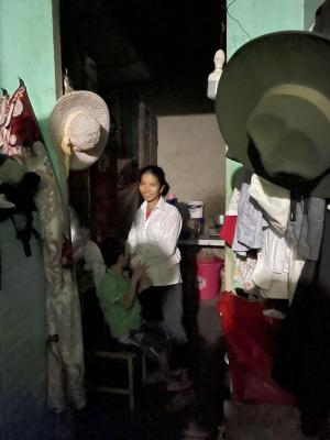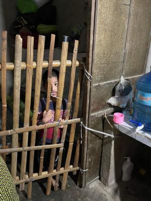 2 cháu con vợ chồng anh chị cũng đều khuyết tật, trong 2 cháu có 1 cháu đã 7 tuổi còn kèm bệnh viêm màng não, nên không kiểm soát được hành vi của bản thân, nên cả nhà bảo vệ cháu bằng cách nhốt lại trong 1 không gian riêng gần góc bếp, vì không kiểm soát được hành vi nên cháu phải mang bĩm suốt ngày.