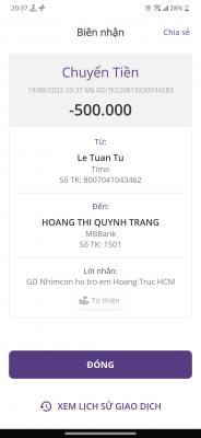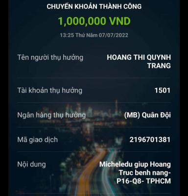 Nhờ Letuantu trung chuyển tiền tới cháu Hoàng Trúc và đóng tạm ứng viện phí dùm cho cháu ấy nhé.