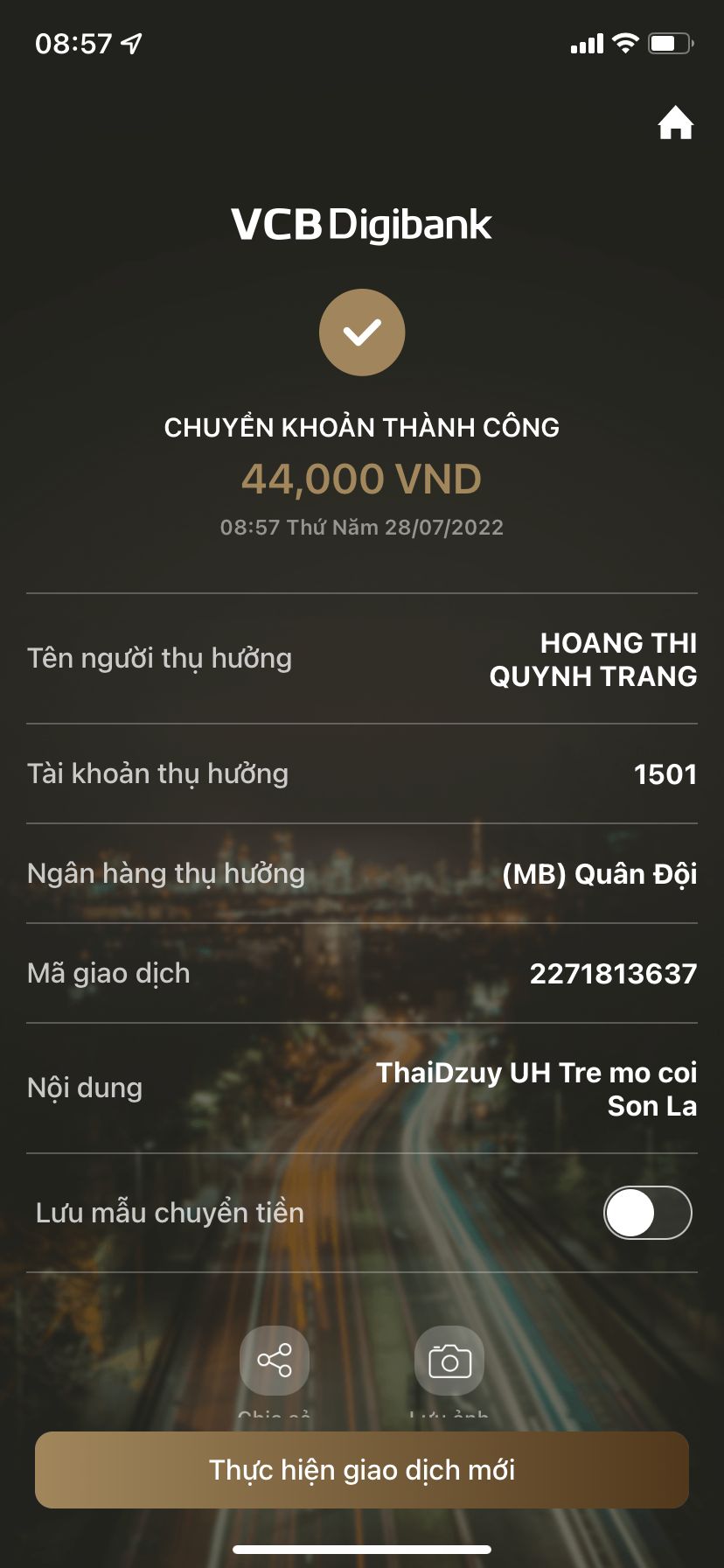 Bạn Nguyen Le ủng hộ 1tr. Đã chuyển khoản ạ!