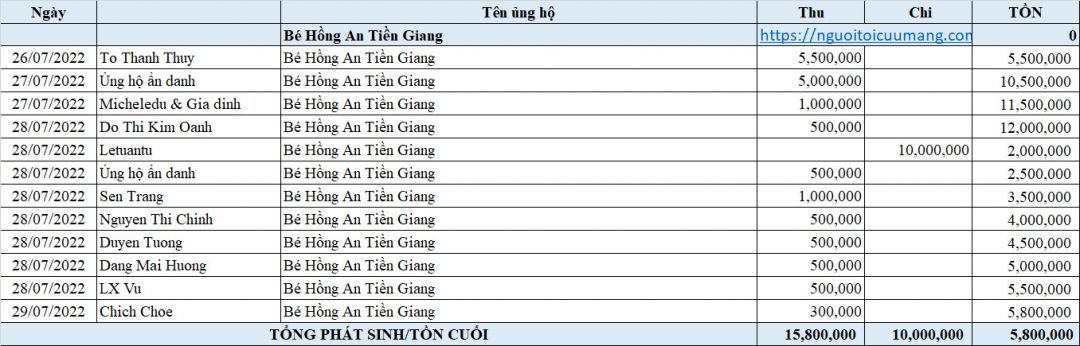 Hiện quỹ vẫn còn đang giữa 5.800.000đ của Mạnh thường quân giúp em Hồng Ân. Không biết chị @maitan97 và Thầy @Lực Phan còn liên lạc với bé không ah? Nay Vịt mới đọc lại hoàn cảnh của bé mà thấy thương quá, mong mọi người cập nhật thêm để có thể giúp đỡ con kịp thời.